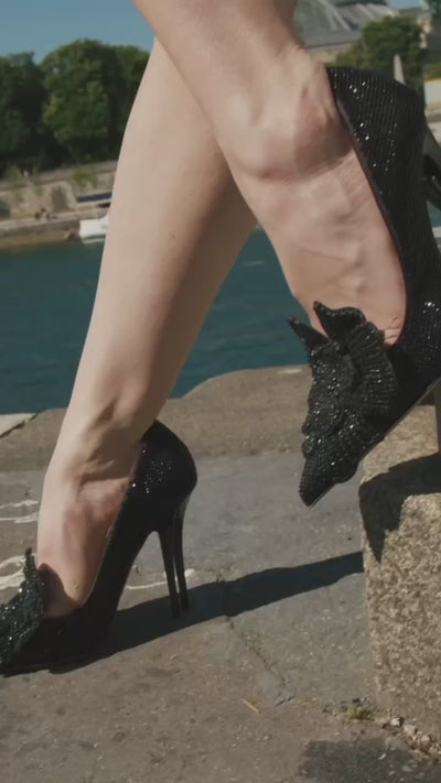 Bonsoir Strass & Flower Pumps 105 - Black